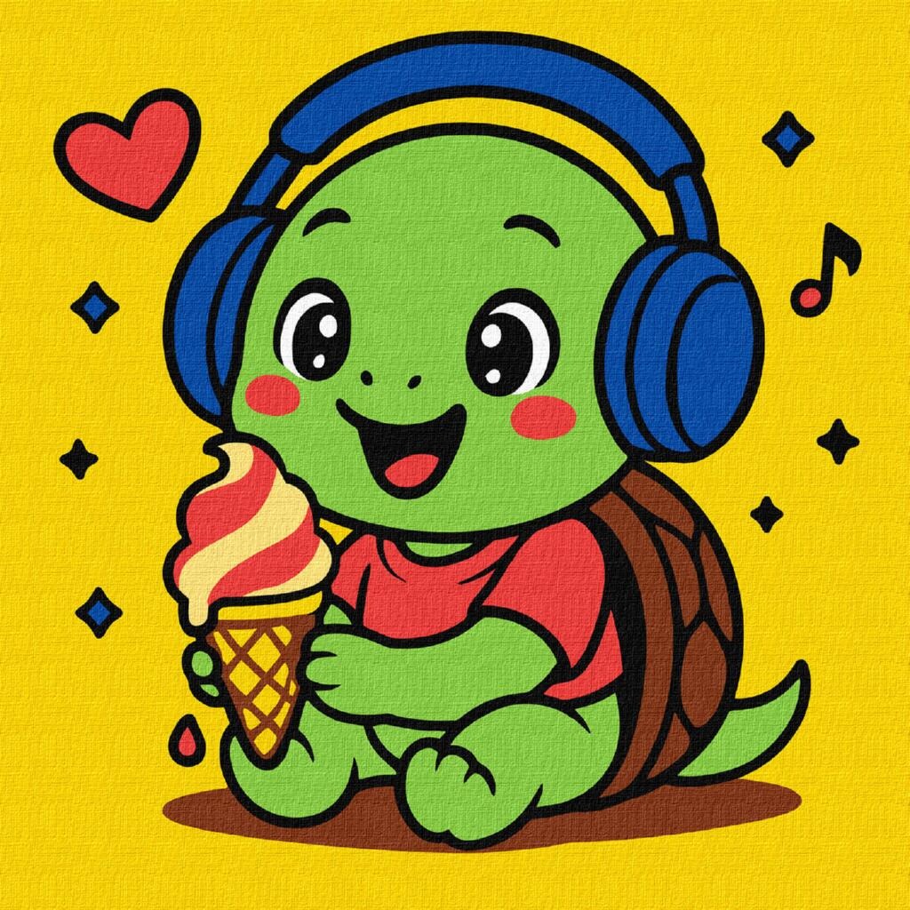 Картина за номерами “Ідейка” /KHO1298/ “Черепашка їсть морозиво” 25х25см